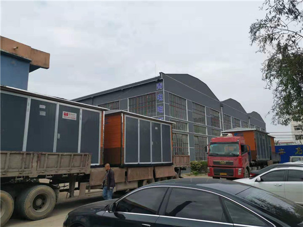 我公司自主研发生产即墨蓝色硅谷雕花板外壳箱式变电站发货安装现场。